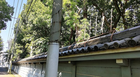 湊川神社の北側の塀の上に・・・ 何だろう、侵入防止の為の忍び返し みたいな? いや、おおよそ10メートル間隔でぽつぽつとしか設置されていない。 ···